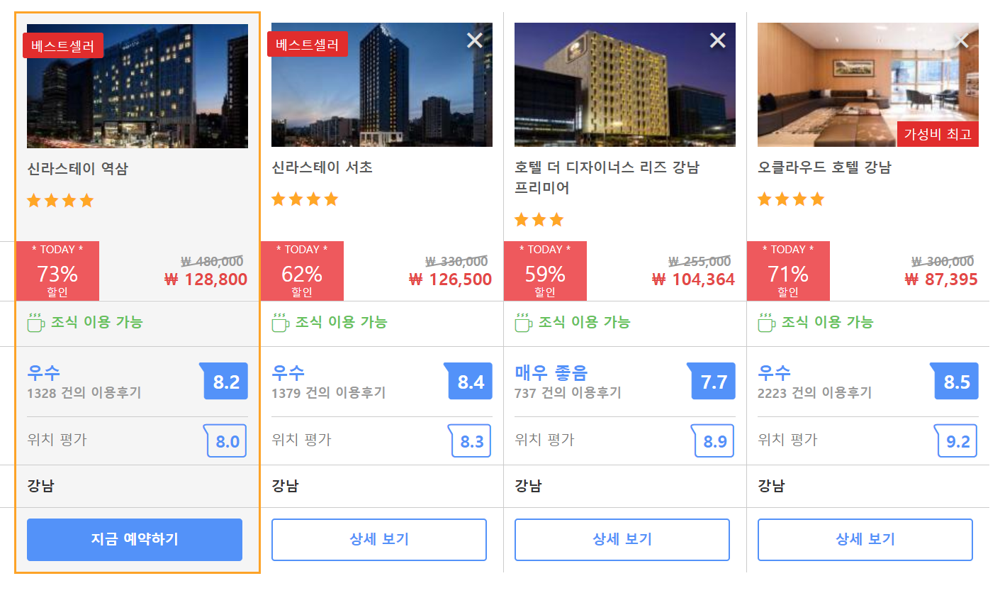 서울 강남의 깨끗하고, 시설좋은 역삼호텔