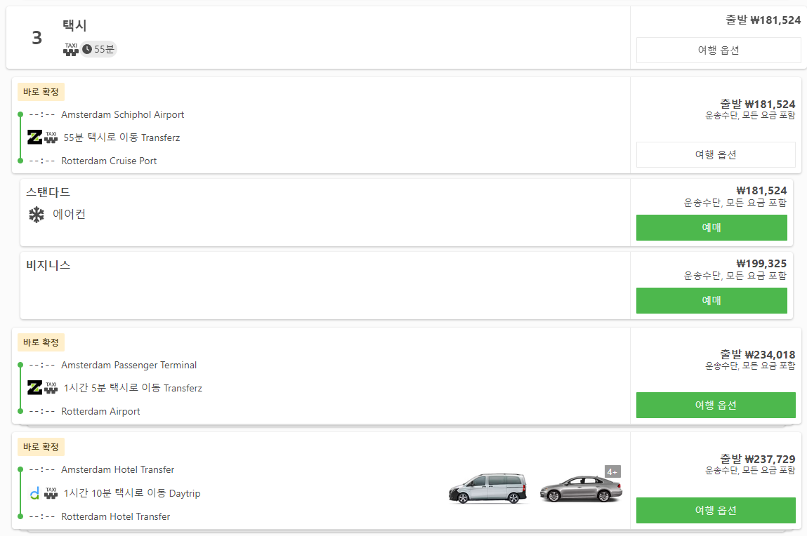 암스테르담에서 로테르담으로 이동하는 택시 교통편