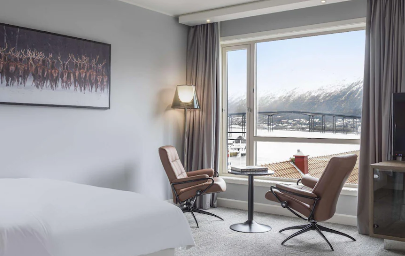 노르웨이 트롬쇠의 멋진 전망의 훌륭한 호텔 트롬쇠 레디슨 블루 호텔(Radisson Blu Hotel Tromso)은 멋진 트롬쇠 항구 옆 바다 전망의 객실로 매우 현대적이고 잘 설계된 호텔입니다. 트롬쇠 레디슨 블루 호텔은 트롬쇠에 있는 5성급 호텔로 눈에 띄는 위치에 있으며 호텔 바로 앞에 고속 셔틀 버스가 정차합니다. 킹룸은 부분적인 만의 전망을 제공하며 욕조를 갖추고 있습니다.