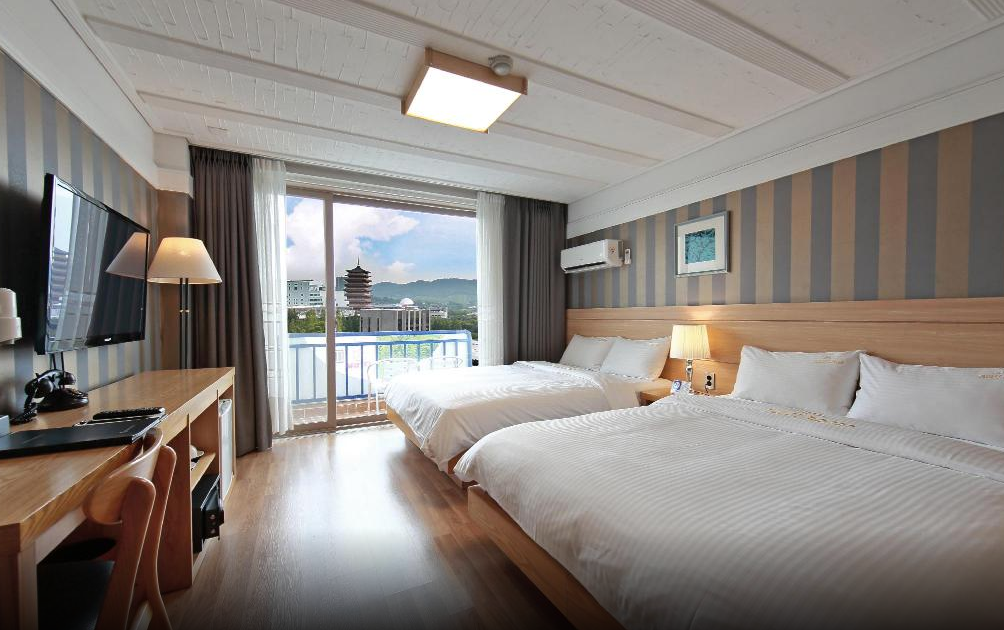 3명이서 경주여행 2박3일을 계획하고 숙소를 예약했는데, 1박에 10만원정도로 호텔이지만 저렴하게 예약할 수 있어서 좋았습니다. 경주월드에서 도보로 15분정도 걸렸던것같아요. 8분정도 걸으면 정류장이 있어서 좋았지만, 숙소까지 올라가는 길이 오르막길이라서 그게 약간 힘들었어요. 하지만 위생상태는 매우 마음에 들었습니다! 침대도 크고 좋았어요. 편의점에 들리지 못해서 호텔 1층에 있는 매점이라는 곳에 들렸는데 종류는 다양하지 않아서 미리 사가는게 좋을것같아요. 전체적으로 만족스러웠던 여행이었습니다~