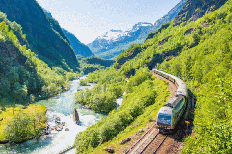 플롬 철도(Flåm Railway)는 노르웨이에서 가장 인기 있는 관광 명소 중 하나이며, 노르웨이의 멋진 자연 경관을 감상할 수 있는 최고의 방법 중 하나로 손꼽힙니다. 이 철도는 미르달(Myrkdalen) 마을 근처의 미르달역(Myrdal Station)에서부터 아름다운 플롬(Flåm) 마을까지 약 20킬로미터를 연결하며, 해발 866미터에서 해수면까지 급경사를 내려갑니다.