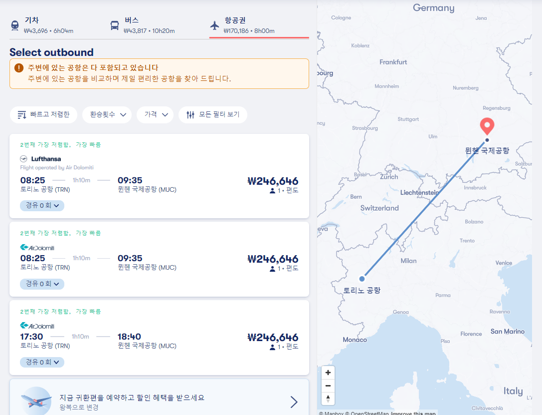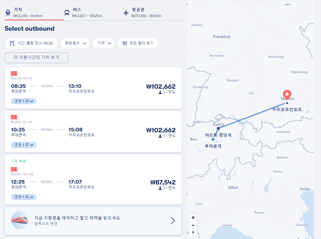 루체른뮌헨이동/ 루체른에서 뮌헨으로 이동하는 교통편, 버스노선과 기차노선 요금 및 이동시간 비교