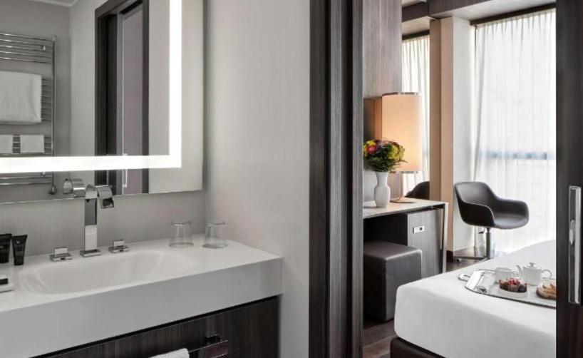 호텔의 내부는 현대적인 디자인과 미술 작품으로 꾸며져 있어, 세련된 분위기를 자아냅니다. 객실은 넓고 편안하며, 최신 기술과 편의 시설로 잘 갖춰져 있어 비즈니스와 여가를 위한 여행객 모두에게 완벽한 숙소를 제공합니다. 각 객실에서는 밀라노의 아름다운 도시 전경을 감상할 수 있으며, 일부 객실에서는 멋진 알프스 산맥의 전망도 즐길 수 있습니다.