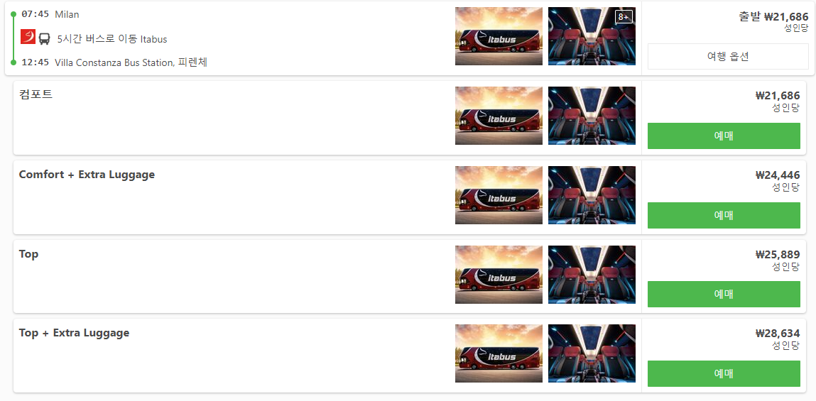 밀라노에서 피렌체로 가는 교통편 예약사이트