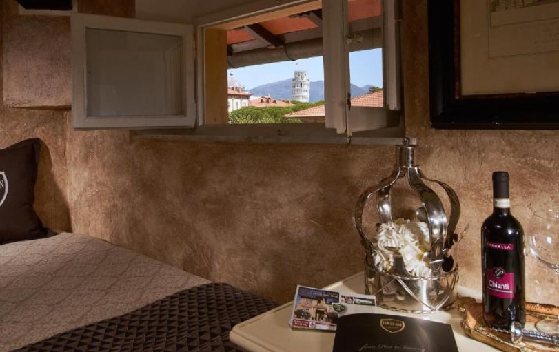 호텔 건물 자체는 역사적인 매력을 발산합니다. 오래된 석재 벽과 우아한 아치형 창문은 과거로의 여행을 암시합니다. 이곳의 각 객실은 독특하게 꾸며져 있으며, 고급스러운 가구와 세심한 장식으로 고객들에게 편안함과 안락함을 제공합니다. 객실에서는 피사의 아름다운 경관을 볼 수 있으며, 일부 객실에서는 직접 기울어진 탑을 바라볼 수 있어 마치 이탈리아 역사의 일부가 된 듯한 느낌을 줍니다.