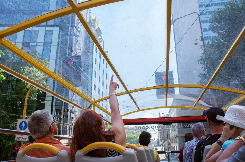 V. 오픈탑 파노라마 관광 버스를 타고 나만의 속도로 밀라노를 둘러보세요.