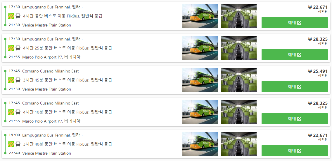 밀라노에서 베네치아로 이동하는 교통편 예약사이트