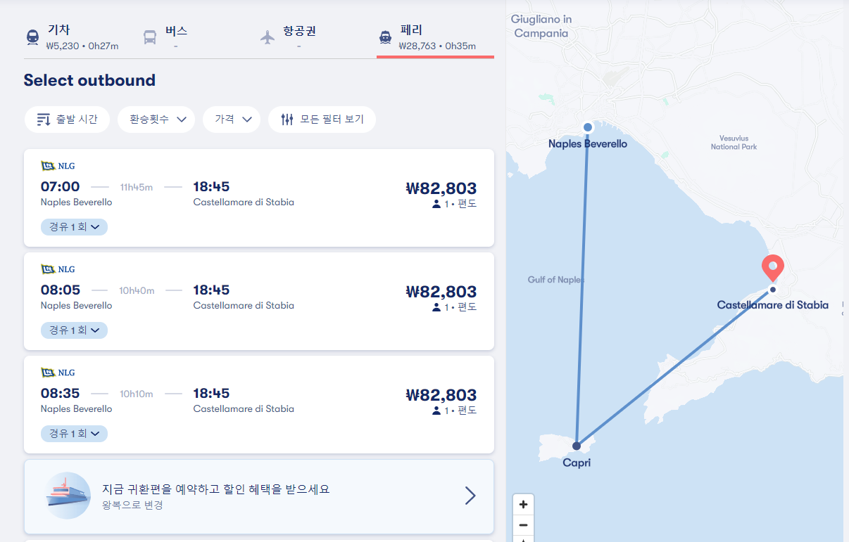 나폴리에서 폼페이로 가는 페리 교통편