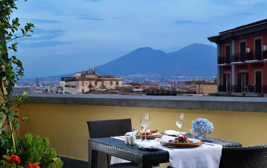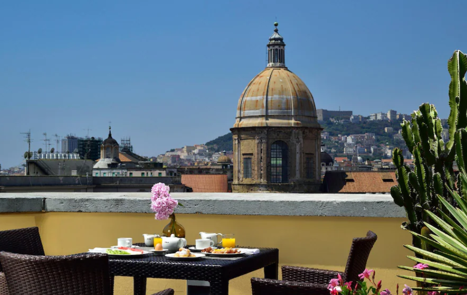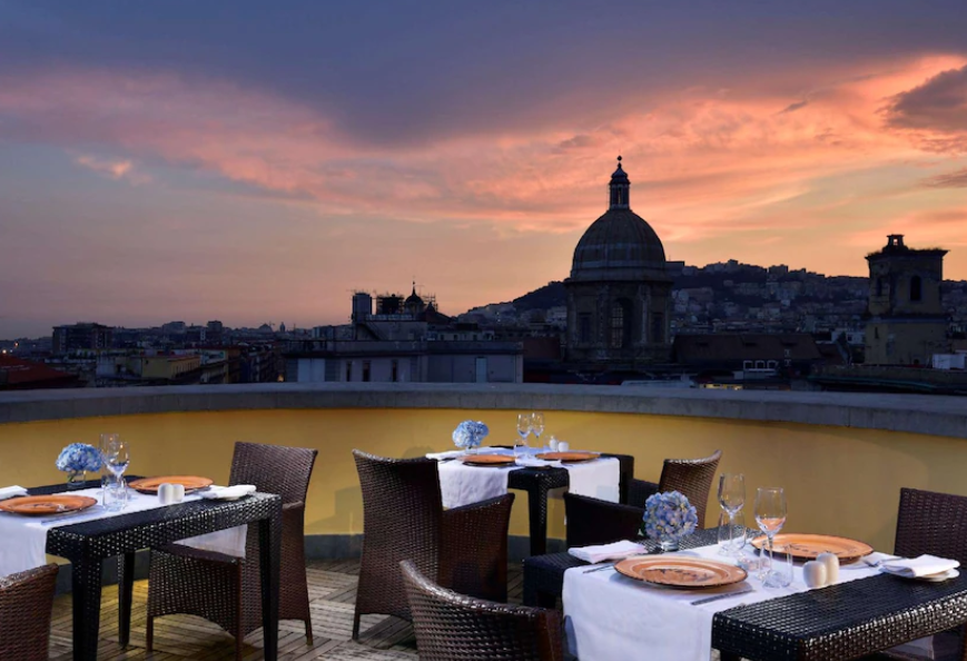 호텔의 위치가 나폴리 역 인근에 있어 접근하기가 좋고 주변에 식당과 쇼핑몰이 있어 편리하며 특히 조식은 매우 정갈하며, 조식이 나오는 스카이 라운지 전망이 좋습니다.