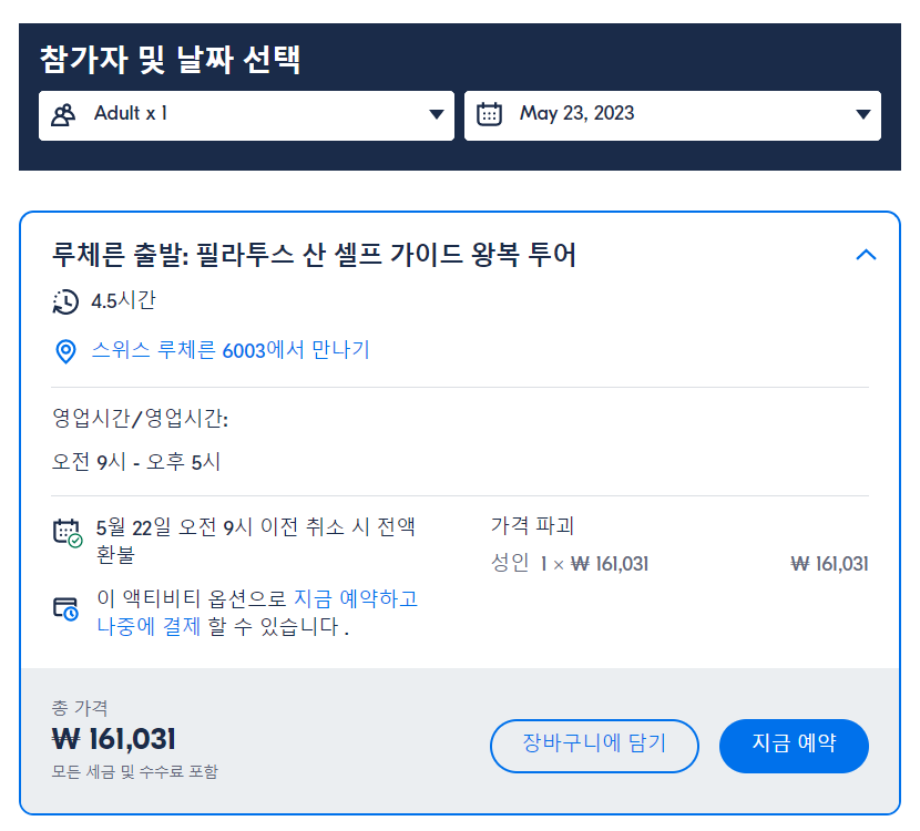 루체른출발 필라투스 산 셀프 가이드 골든 왕복 여행 교통편 패키지는 GET YOUR GUIDE 사이트에서 예약하실 수 있습니다. 사이트는 특히 전세계 대부분의 나라, 지역의 투어, 교통편 있어, 쉽게 찾을 수 없는 여행지의 다양한 투어 및 서비스를 이용할 수 있는 글로벌 사이트로 한국어사이트는 지원하지 않습니다. (글로벌 한국어 여행사이트를 찾으신다면 klook 여행사이트 추천합니다. 함께 사용하시면 더욱 편하게 여행하실 수 있습니다. klook에 찾는 정보가 없다면 GET YOUR GUIDE에서 찾으시면 됩니다.)