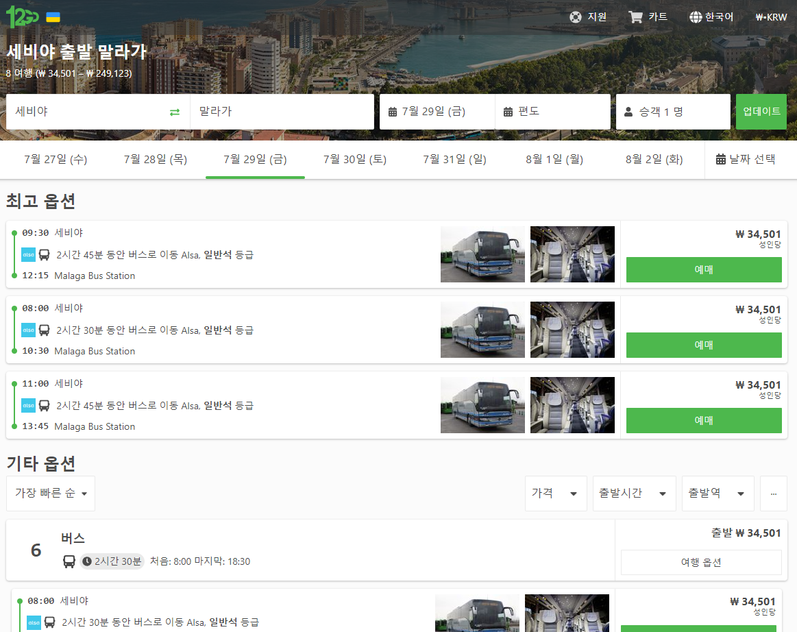 세비야에서 말라가로 이동하는 교통편 예약사이트