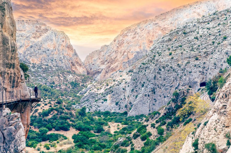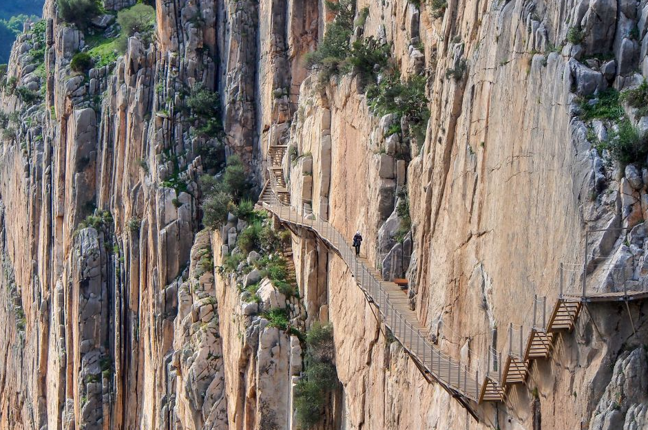 카미니토 델 레이(Caminito del Rey)는 스페인 안달루시아 지역의 말라가 주에 위치한 대담한 자연 경관을 자랑하는 하이킹 코스입니다. 이 길은 1905년에 건설되어 1921년에 스페인의 알폰소 13세 왕이 개통식에 참석하면서 ‘왕의 길’이라는 이름으로 불리게 되었습니다. 길이 약 7.7km에 달하며, 그중 3km 가량은 협곡을 따라 설치된 목재 보도와 다리로 이루어져 있습니다.