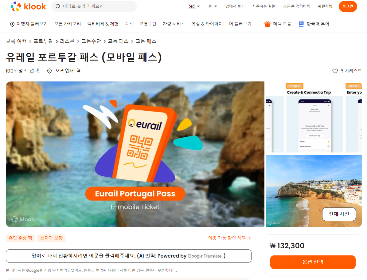 유레일 포르투갈 패스 (모바일 패스)는 클룩사이트에서 쉽게 예약하실 수 있으며, 현재 할인된 금액에 이용하실 수 있습니다.
