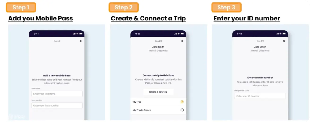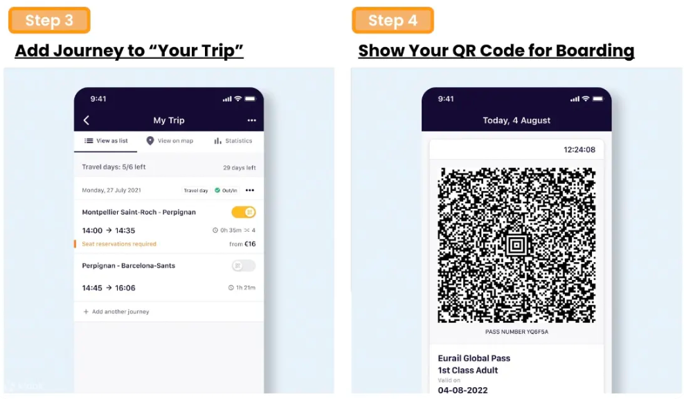 이제 모든 유레일 패스는 모바일 패스이므로 종이 패스를 사용할 필요가 없습니다. 유레일을 활성화하는 방법에 대한 단계별 가이드가 있습니다. 모바일 또는 컴퓨터에서 글로벌 패스 및 유레일 원컨트리 패스.