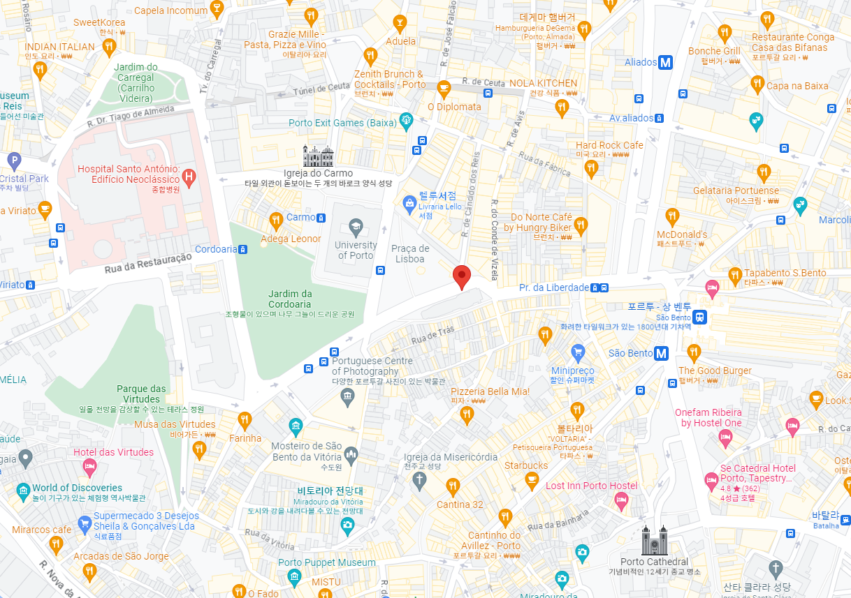 포르투 토레 도스 클레리고스 교회(Porto Torre dos Clerigos) 위치