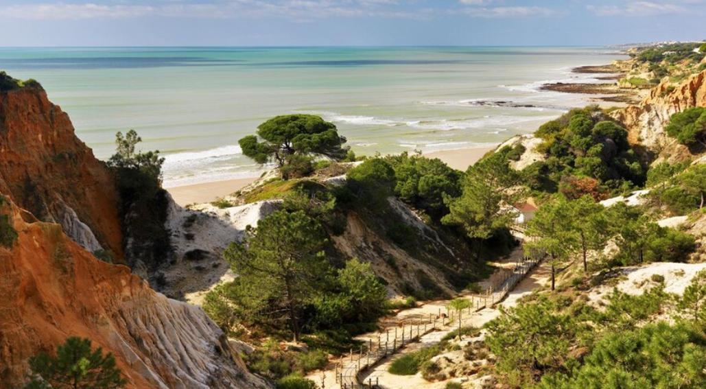 알부페이라의 올호스 데 아구아 지역은 포르투갈 남부 알가르브 지역의 아름다운 해변가에 위치해 있습니다. 이 지역은 특히 Praia Da Falesia라는 장엄한 절벽과 황금빛의 모래사장으로 유명한 해변을 가지고 있습니다.