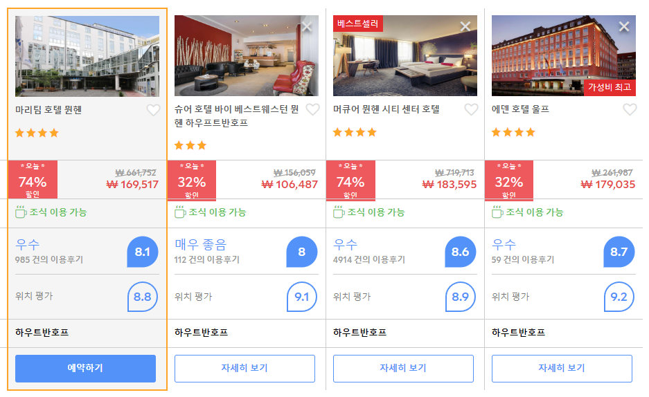 마리팀 호텔 뮌헨 (Maritim Hotel Munich)의 최저 가격대는 아고다웹사이트에서 할인특가 가격으로 매일매일 변동되며 10만원대부터 다양하게 형성됩니다. 날짜별로 매일 가격이 다르므로 아고다웹사이트 최저가를 확인하시려면 아래 링크를 누르시고 원하는 날짜의 가격대를 선택해야 정확한 가격을 자세히 보실 수 있습니다.