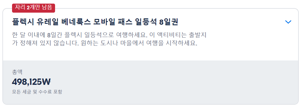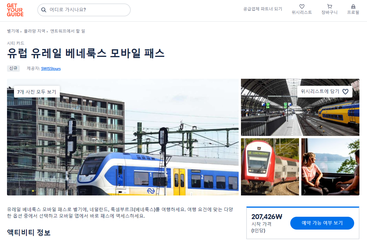 유레일 베네룩스 패스는 GET YOUR GUIDE 사이트에서 예약하실 수 있습니다. 사이트는 특히 전세계 대부분의 나라, 지역의 투어, 교통편 있어, 쉽게 찾을 수 없는 여행지의 다양한 투어 및 서비스를 이용할 수 있는 글로벌 사이트로 한국어사이트는 지원하지 않습니다. (글로벌 한국어 여행사이트를 찾으신다면 klook 여행사이트 추천합니다. 함께 사용하시면 더욱 편하게 여행하실 수 있습니다. klook에 찾는 정보가 없다면 GET YOUR GUIDE에서 찾으시면 됩니다.)