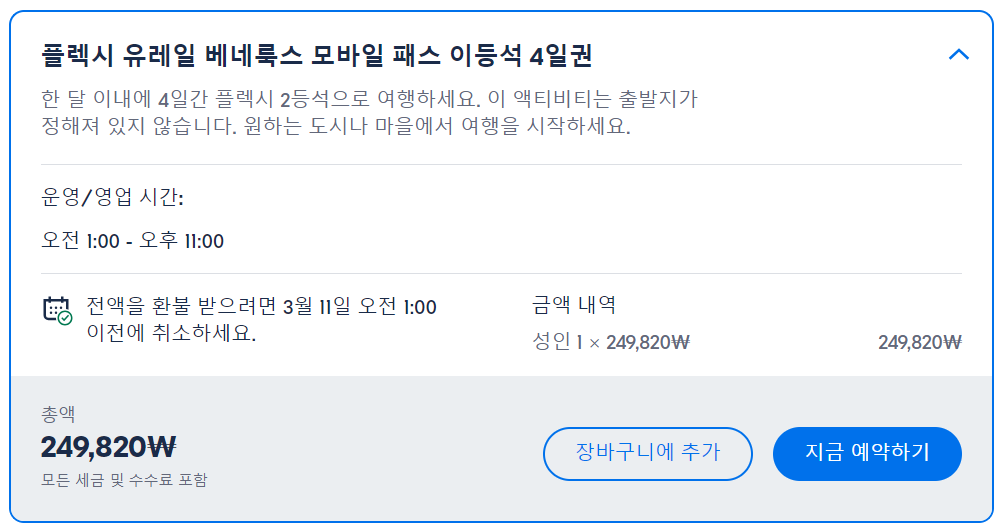 1개월 이내에 3일, 4일, 5일, 6일 또는 8일 여행일 중에서 선택하세요.