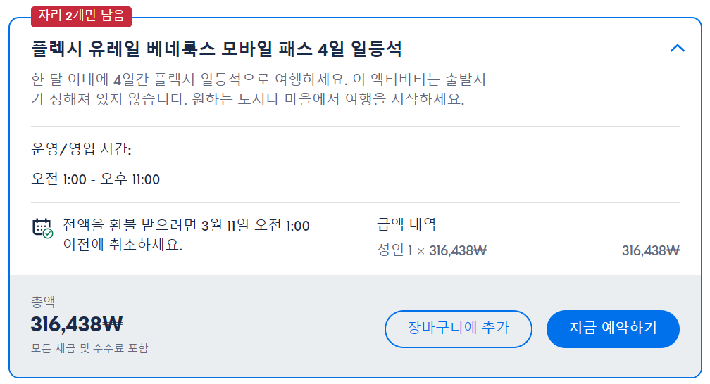 그리고 한국인들이 많이 참여하는 투어보다 다양한 나라의 사람들이 많이 참여하는 만큼 다른사람들 시선을 신경쓰지 않고 편하게 여행을 즐기길 원하는 사람들에게 더욱 추천합니다. 한국어로 쉽게 예약할 수 있고 한국분들이 많이 참여하는 투어는 klook 여행사이트에 예약하시고 한국분들 많이 참여하지 않는 현지투어의 분위기를 좋아하시는 분들은 GET YOUR GUIDE에 예약하시면 됩니다.