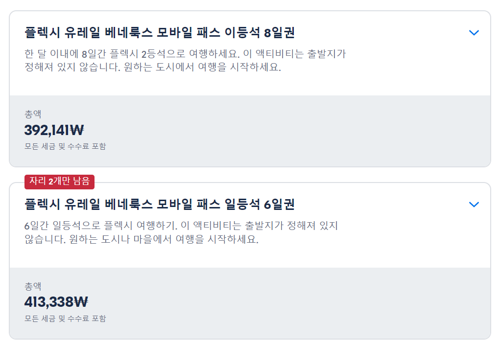 패스 사용 날짜 선택: 유레일 베네룩스 패스는 이용 가능한 일수가 정해져 있습니다. 예를 들어, 3, 4, 5, 8일 이용 가능한 패스가 있으며, 이 기간은 1달 내에 사용해야 합니다.