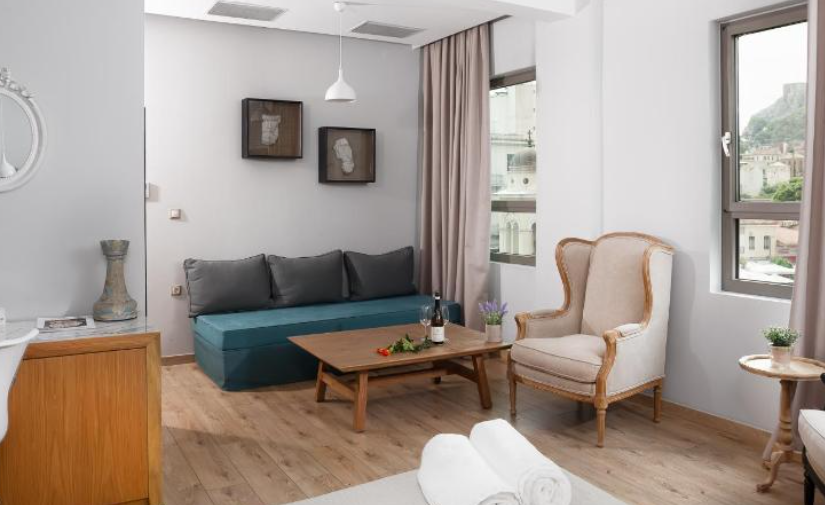객실은 현대적이고 세련된 디자인으로 꾸며져 있으며, 무료 Wi-Fi, 에어컨, 평면 TV 등의 편의 시설을 제공합니다. 일부 객실에서는 아크로폴리스나 아테네 도시의 전망을 즐길 수도 있습니다.