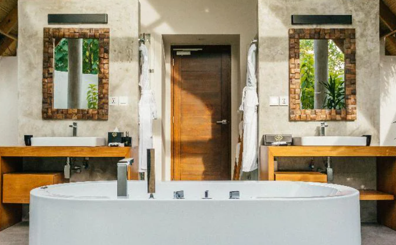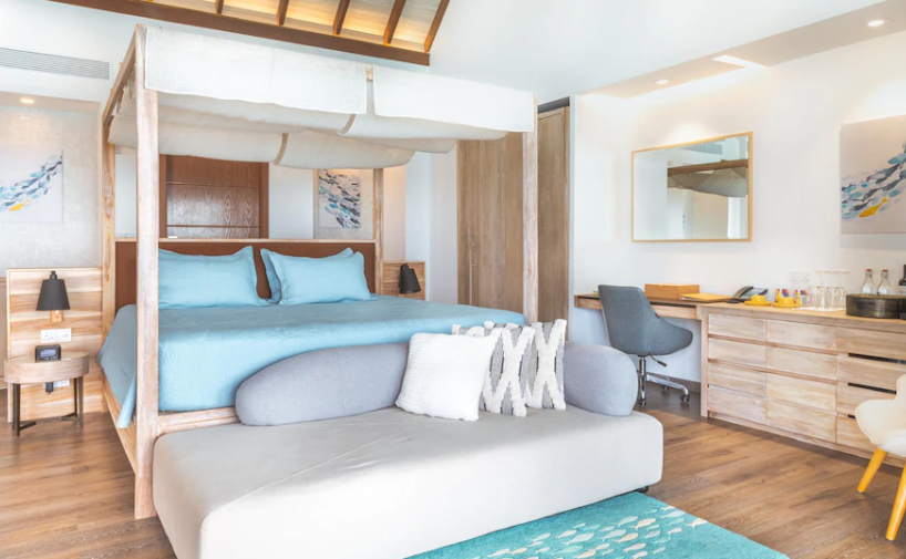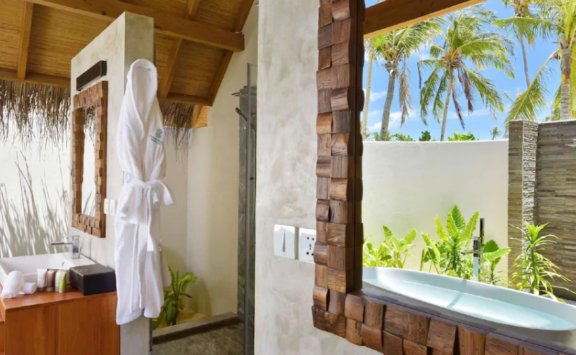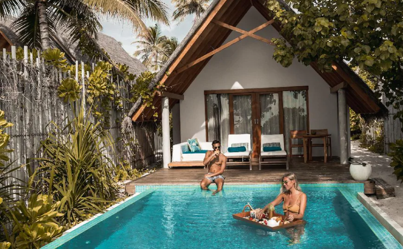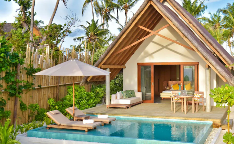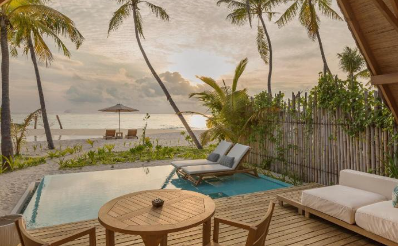 리조트는 풍부한 열대 식물과 백사장, 투명한 바다로 둘러싸여 있으며, 각각의 별장은 세련되게 디자인되어 있습니다. 이 곳에서는 개인 수영장이 있는 비치 빌라와 워터 빌라를 선택할 수 있습니다. 각 별장은 개인적인 공간을 제공하며, 모두에서 바다를 볼 수 있습니다.