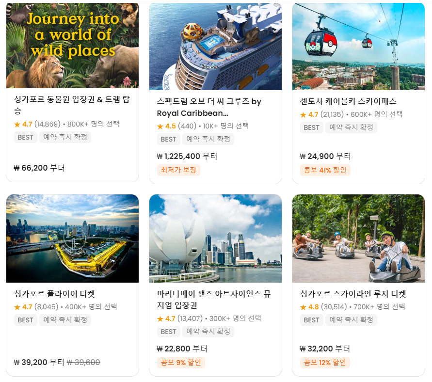 싱가포르여행 // 싱가포르여행에 45가지 싱가포르액티비티가 포함되어 있는 싱가포르 올데이패