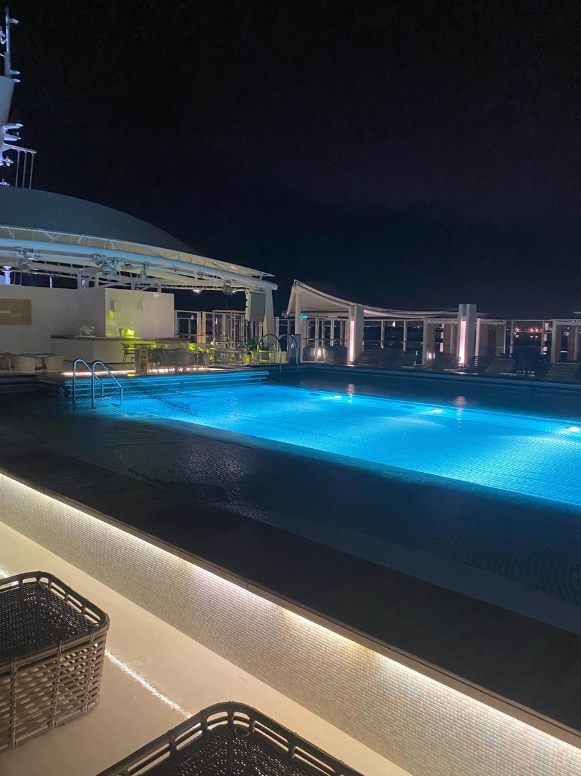수영장 & 자쿠지: 크루즈 내에는 여러 개의 수영장과 자쿠지가 있습니다. 햇빛 아래에서 수영하거나, 자쿠지에서 편안하게 시간을 보낼 수 있습니다.