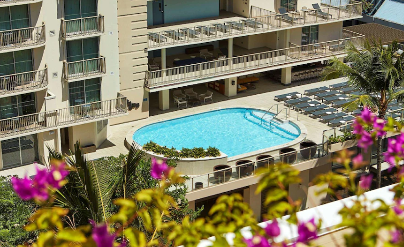 하와이여행 에 하와이 본섬 호눌룰루에서도 가장 번화한 위치의 와이키키 해변지역에 위차한 하와이호텔 하와이쇼어라인호텔 와이키키 (Shoreline Hotel Waikiki)는 가성비 좋은 부띠끄호텔로 세련된