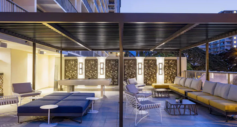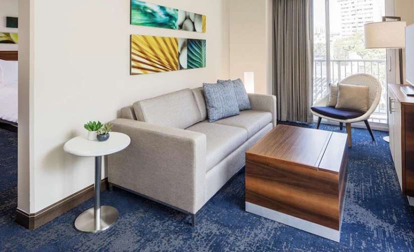 호텔의 객실은 현대적이고 편안한 디자인으로 꾸며져 있으며, 무료 Wi-Fi, 평면 TV, 미니 냉장고, 전자레인지, 커피 메이커 등 다양한 편의 시설을 갖추고 있어 장기 체류는 물론 짧은 여행객들에게도 적합합니다. 특히, 일부 객실에서는 바다나 도시의 멋진 전망을 즐길 수 있어 하와이의 아름다움을 더 가까이에서 느낄 수 있습니다.