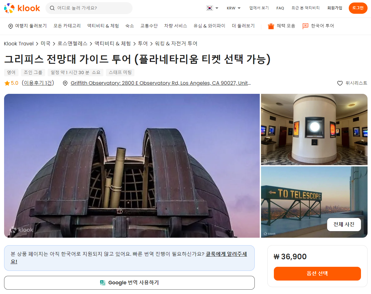 그리피스 전망대 가이드 투어는 클룩사이트에서 쉽게 예약하실 수 있으며, 현재 할인된 금액에 이용하실 수 있습니다.