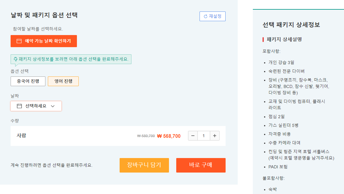 어픈워터 다이버 자격증 취득에 필요한 모든것이 다 포함되어 있습니다.