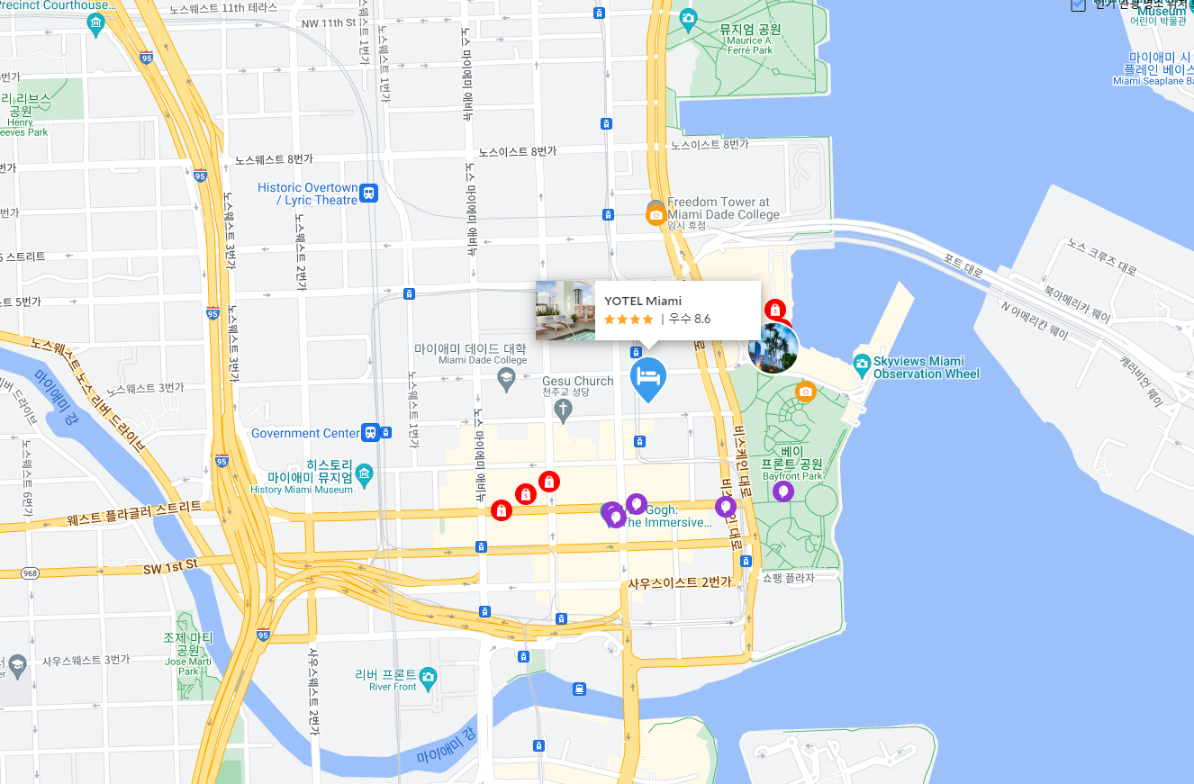 위치: 요텔 마이애미 (YOTEL Miami) 호텔은 마이애미의 중심부에 위치해 있어 주요 관광 명소, 쇼핑 지역, 식당 및 나이트라이프에 쉽게 접근할 수 있는 이점이 있습니다. 마이애미 비치나 다운타운 마이애미 같은 인기 지역을 탐험하기에 이상적인 출발점입니다.