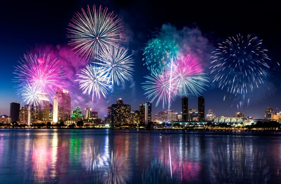 V. 와이키키 해변가에서 불꽃놀이를 즐기며 상쾌한 음료를 즐겨보세요.
