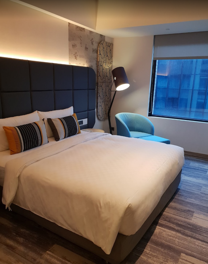 커플 관광객에게 적당한 호텔. 교통(지하철, 철도, 시외버스), 위치, 주변의 상가, 딘타이펑, 키키레스토랑, 춘수당 그리고 시청사는 덤. 샤워기와 욕조, 최신식 변기, 방안에 세면대가 있어 유용. 더불 침대와 보조 소파가 있음. 조그만 불편한 점으로는 3일 동안 슬리퍼를 바꿔주지 않음(여러 호텔을 다녔지만 처음). 복도의 카페트가 너무 푹신해 가방을 끌기가 매우 힘들었음. 가격대비 훌륭한 호텔.