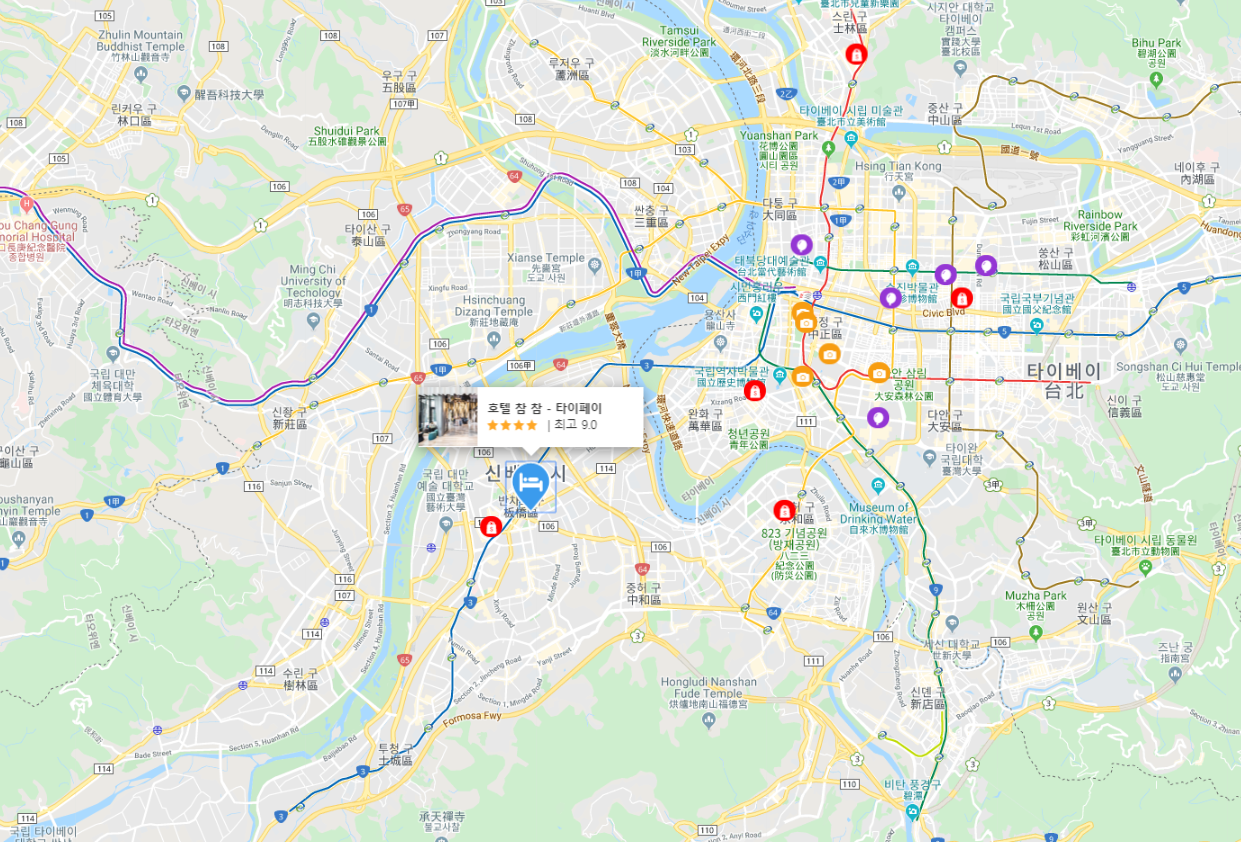 타이베이여행에 반차오 전철역에서 5분거리에 있는 호텔 참 참 - 타이페이 (HOTEL CHAM CHAM - Taipei)는 주변에 쇼핑몰도 2곳이 있으며 객실도 넓고 깨끗하게 관리가 잘 되어 있는 호텔로 교통도 편리하고, 딘타이펑, 키키레스토랑, 춘수당 등 이 주변에 있어 편리하며 번잡하지 않고 여유로운 거리분위기도 좋고 10만원 전후의 가격대비 가성비도 좋은 타이베이호텔입니다.