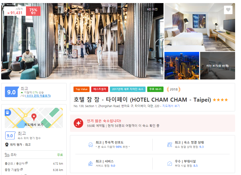 대만 가실때 무조건입니다 가성비 짱 무조건 여기입니다 시먼딩이나 타이페이 호텔은 창문 룸 크기 한국인에게 맞지 않아요 같은가격에 최고입니다