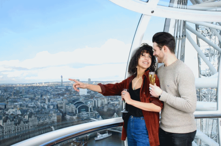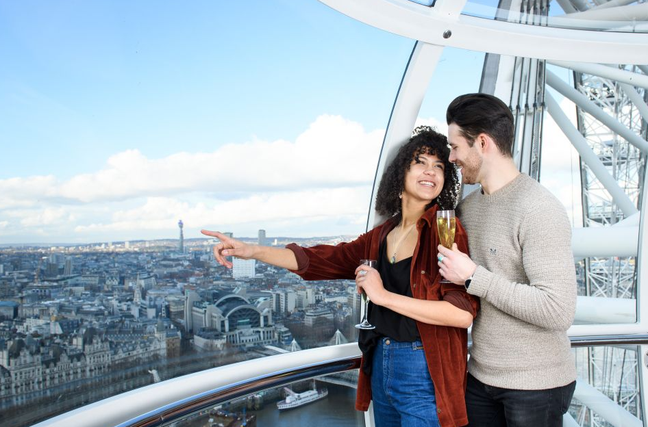 환상적인 전망: 런던 아이는 런던의 중심부에 위치해 있으며, 그 위에서는 템즈 강, 빅 벤, 국회의사당 등 런던의 유명한 명소들을 한눈에 볼 수 있습니다. 샴페인을 마시며 이러한 전경을 감상하는 것은 매우 로맨틱합니다.