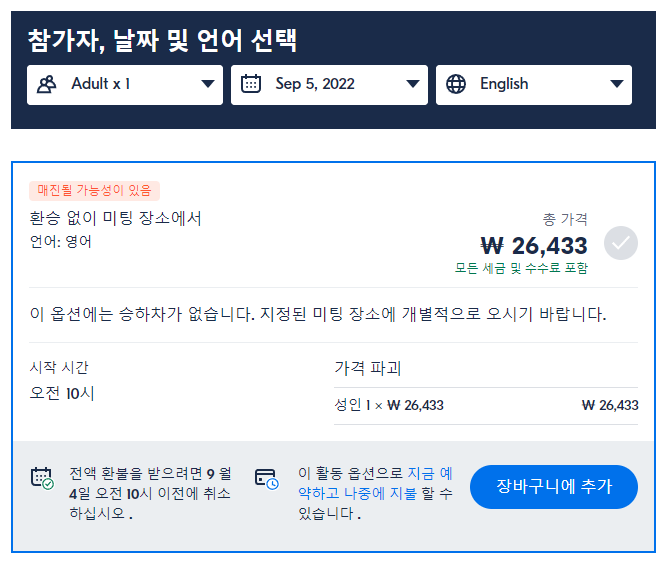그리고 한국인들이 많이 참여하는 투어보다 다양한 나라의 사람들이 많이 참여하는 만큼 다른사람들 시선을 신경쓰지 않고 편하게 여행을 즐기길 원하는 사람들에게 더욱 추천합니다. 한국어로 쉽게 예약할 수 있고 한국분들이 많이 참여하는 투어는 klook 여행사이트에 예약하시고 한국분들 많이 참여하지 않는 현지투어의 분위기를 좋아하시는 분들은 GET YOUR GUIDE에 예약하시면 됩니다.