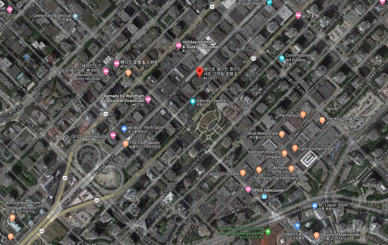 밴쿠버 시내 중심가의 위치좋고 가성비 좋은