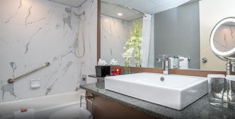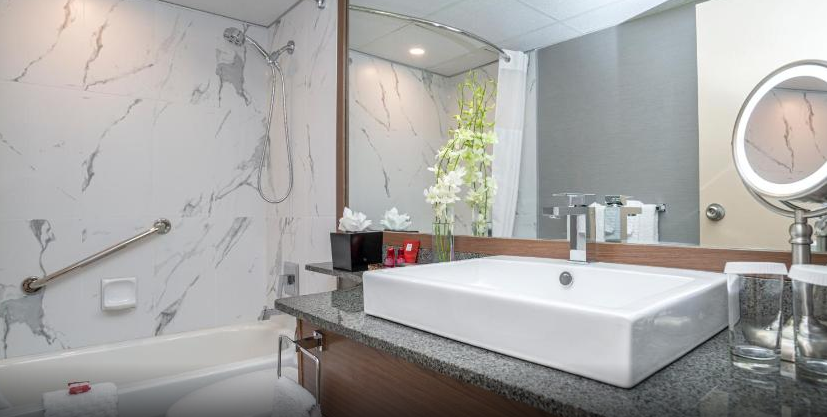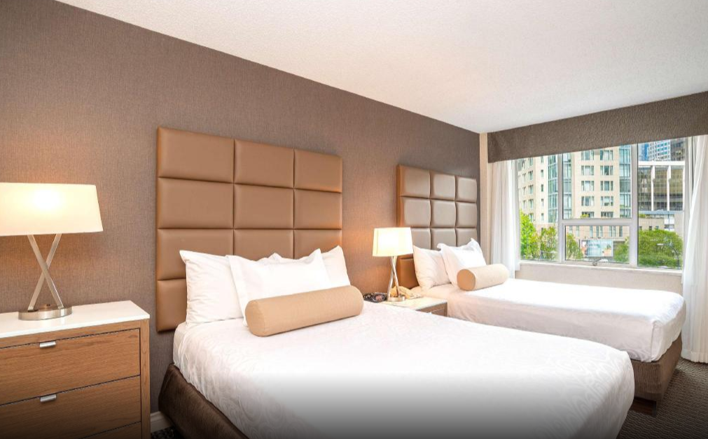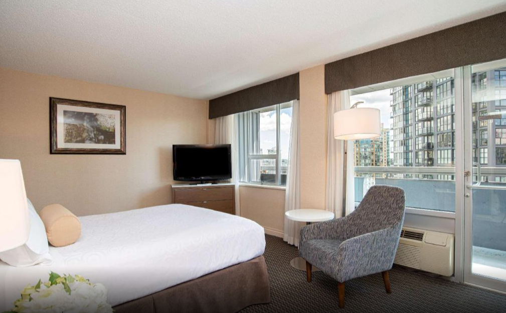 늦은 밤 밴쿠버에 도착하여 호텔에 체크인 하였습니다. 야간 시간에 있던 호텔 직원들은 아주 친절하진 않았으나 충분한 도움을 주었습니다. 제가 이용한 객실은 14층에 있었으며 발코니, 거실이 포함된 객실이었습니다. 객실은 께끗했으며 충분한 어메니티를 가지고 있었습니다. 이 호텔은 시내 중심가에서 가까우나 호텔이 있는 지역은 유흥가입니다. 늦은 시간에 거리를 걸으면 술취한 사람들을 쉽게 볼 수 있었으며 호텔 주변에 술집, 성인용품점 등이 있었습니다. 어린 자녀와 여행하는 경우 이를 감안하여 호텔을 예약하는 것이 좋을 것 같습니다.