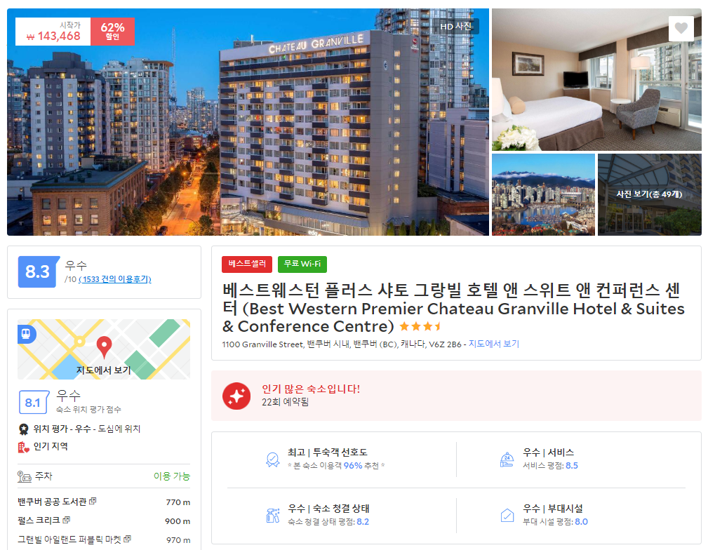 밴쿠버 베스트웨스턴 플러스 샤토 그랑빌 호텔 아고다 최저가 자세히 보기