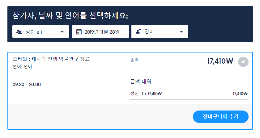 오타와의 캐나다 전쟁 박물관 입장권