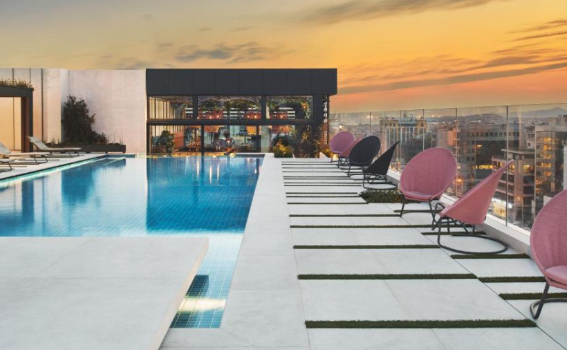 모든 객실은 세련된 디자인과 현대적인 편의 시설이 잘 갖추어져 있습니다. 일부 객실에서는 아크로폴리스와 리카비토스 언덕 등 아테네의 명소를 바라볼 수 있는 전망을 즐길 수 있습니다. 호텔 내에는 레스타랑, 바, 피트니스 센터, 스파 등 다양한 시설이 있습니다. 뿐만 아니라 옥상 수영장에서는 아크로폴리스 전망을 즐기면서 휴식을 취할 수 있습니다.