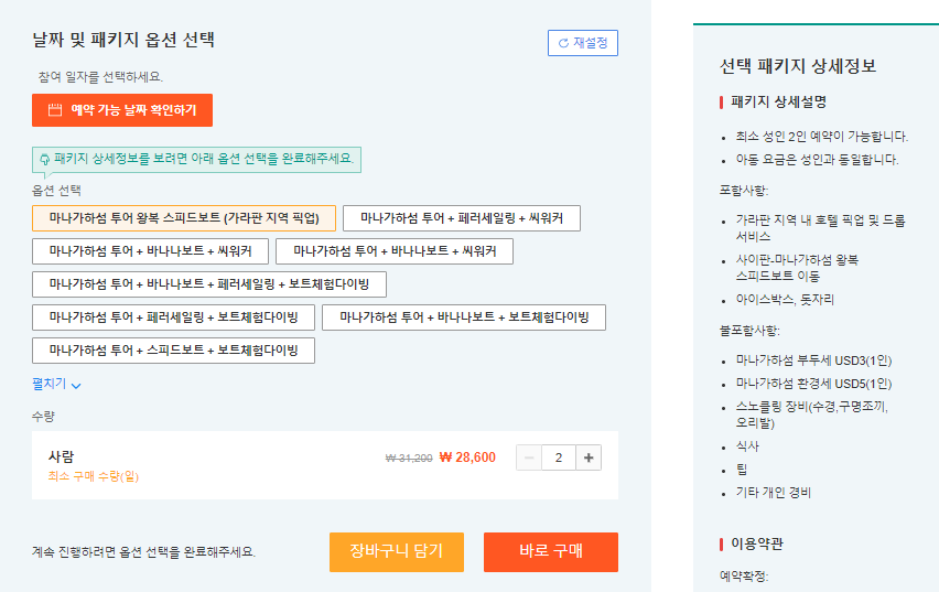다양한 옵션 중 참여하고 싶은 투어상품을 선택하실 수 있으며