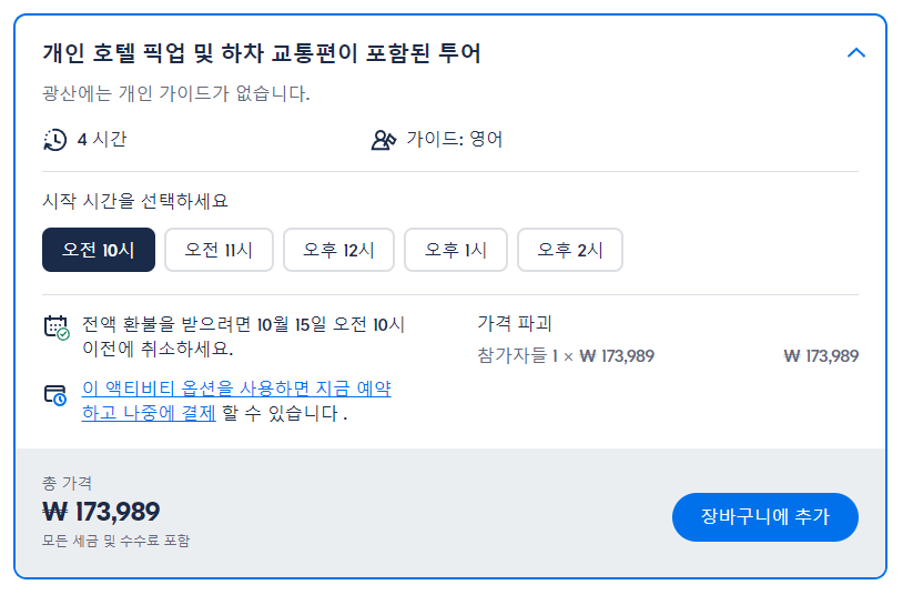 그리고 한국인들이 많이 참여하는 투어보다 다양한 나라의 사람들이 많이 참여하는 만큼 다른사람들 시선을 신경쓰지 않고 편하게 여행을 즐기길 원하는 사람들에게 더욱 추천합니다. 한국어로 쉽게 예약할 수 있고 한국분들이 많이 참여하는 투어는 klook 여행사이트에 예약하시고 한국분들 많이 참여하지 않는 현지투어의 분위기를 좋아하시는 분들은 GET YOUR GUIDE에 예약하시면 됩니다.