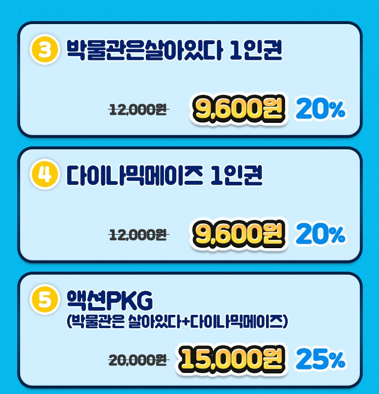 박물관은 살아있다와 다이나믹 메이즈입니다.
