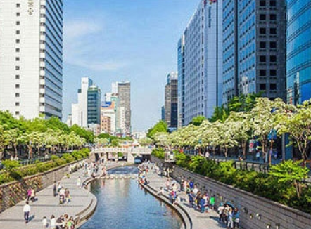 서울 가운데를 가로지르는 청계천 청계천에선 연등행사 등