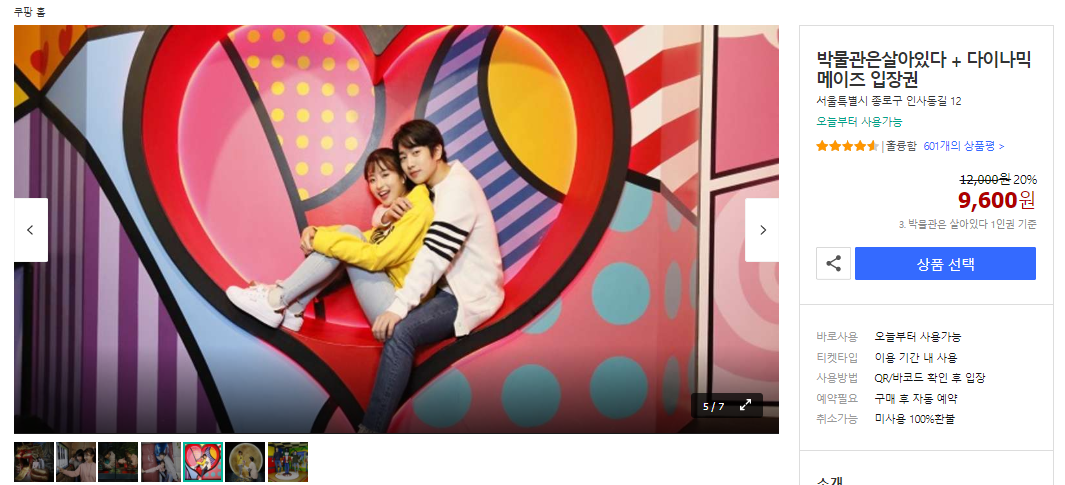 박물관은 살아있다 인사동점 쿠팡 20% 할인 입장권 자세히 보기